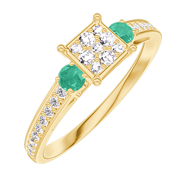 « L'ATELIER » Nº209786Anello Oro giallo 9 carati - Cluster di diamanti naturali Principessa equivalente 0.5 - Pietre laterali Smeraldo - Incastonatura Diamante