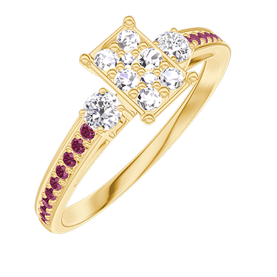 « L'ATELIER » Nº209829Anello Oro giallo 18 carati - Cluster di diamanti naturali Rettangolo equivalente 0.5 - Pietre laterali Diamante - Incastonatura Rubino