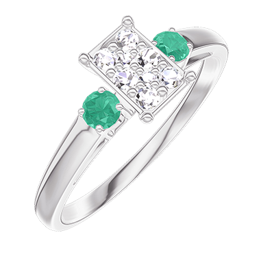 « L'ATELIER » N. 209883Anello Oro bianco 18 carati - Cluster di diamanti naturali Rettangolo equivalente 0.5 - Pietre laterali Smeraldo