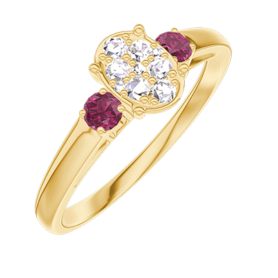 « L'ATELIER » N. 209941Anello Oro giallo 18 carati - Cluster di diamanti naturali Ovale equivalente 0.5 - Pietre laterali Rubino