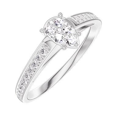 « L'ATELIER » Nº210008Anello Oro bianco 9 carati - Cluster di diamanti naturali Goccia equivalente 0.5 - Incastonatura Diamante