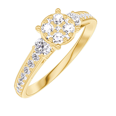 « L'ATELIER » Nº210225Anello Oro giallo 18 carati - Cluster di diamanti naturali Rotonda equivalente 0.7 - Pietre laterali Diamante - Incastonatura Diamante 5