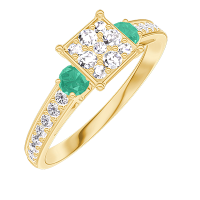 « L'ATELIER » Nº210385Anello Oro giallo 18 carati - Cluster di diamanti naturali Principessa equivalente 0.7 - Pietre laterali Smeraldo - Incastonatura Diamante