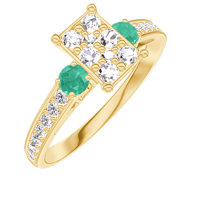 « L'ATELIER » Nº210485Anello Oro giallo 18 carati - Cluster di diamanti naturali Rettangolo equivalente 0.7 - Pietre laterali Smeraldo - Incastonatura Diamante