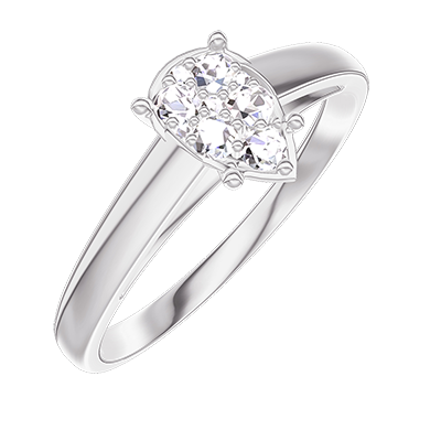 « L'ATELIER » Nº210604Anello Oro bianco 9 carati - Cluster di diamanti naturali Goccia equivalente 0.7