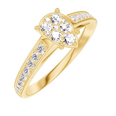 « L'ATELIER » N. 210605Anello Oro giallo 18 carati - Cluster di diamanti naturali Goccia equivalente 0.7 - Incastonatura Diamante