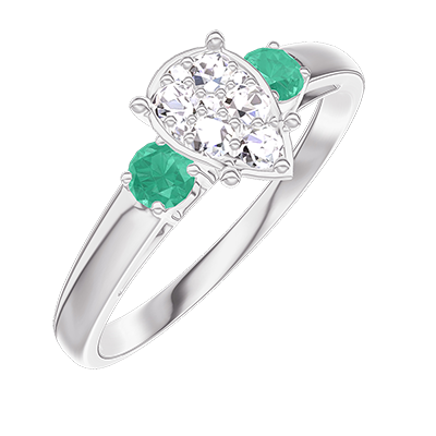 « L'ATELIER » Nº210683Anello Oro bianco 18 carati - Cluster di diamanti naturali Goccia equivalente 0.7 - Pietre laterali Smeraldo