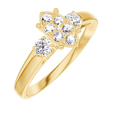 « L'ATELIER » Nº210722Anello Oro giallo 9 carati - Cluster di diamanti naturali Marchesa equivalente 0.7 - Pietre laterali Diamante