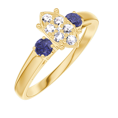 « L'ATELIER » N. 210761Anello Oro giallo 18 carati - Cluster di diamanti naturali Marchesa equivalente 0.7 - Pietre laterali Zaffiro blu