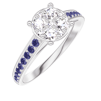 « L'ATELIER » N. 210815Anello Oro bianco 18 carati - Cluster di diamanti naturali Rotonda equivalente 1 - Incastonatura Zaffiro blu 4.8