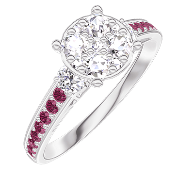 « L'ATELIER » N. 210831Anello Oro bianco 18 carati - Cluster di diamanti naturali Rotonda equivalente 1 - Pietre laterali Diamante - Incastonatura Rubino 4.8