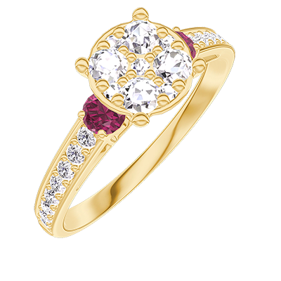 « L'ATELIER » Nº210845Anello Oro giallo 18 carati - Cluster di diamanti naturali Rotonda equivalente 1 - Pietre laterali Rubino - Incastonatura Diamante 4.7
