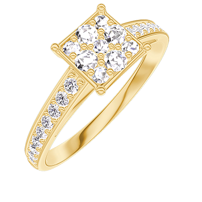 « L'ATELIER » N. 210906Anello Oro giallo 9 carati - Cluster di diamanti naturali Principessa equivalente 1 - Incastonatura Diamante