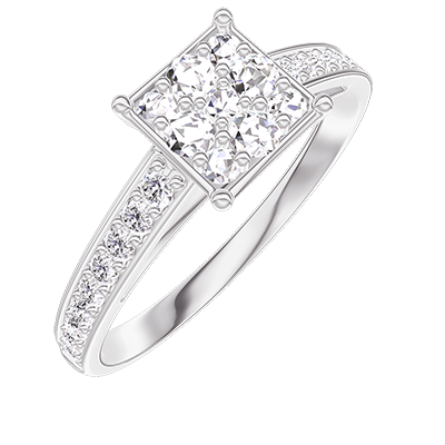 « L'ATELIER » Nº210907Anello Oro bianco 18 carati - Cluster di diamanti naturali Principessa equivalente 1 - Incastonatura Diamante