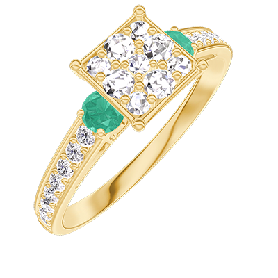 « L'ATELIER » Nº210985Anello Oro giallo 18 carati - Cluster di diamanti naturali Principessa equivalente 1 - Pietre laterali Smeraldo - Incastonatura Diamante