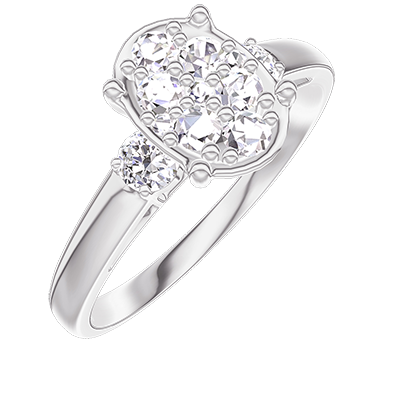 « L'ATELIER » N. 211124Anello Oro bianco 9 carati - Cluster di diamanti naturali Ovale equivalente 1 - Pietre laterali Diamante 4.7