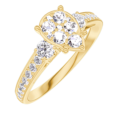 « L'ATELIER » N. 211226Anello Oro giallo 9 carati - Cluster di diamanti naturali Goccia equivalente 1 - Pietre laterali Diamante - Incastonatura Diamante