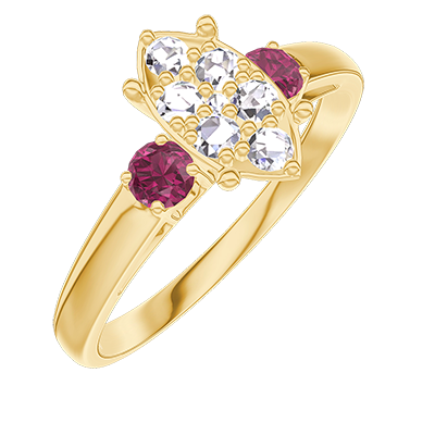 « L'ATELIER » N. 211342Anello Oro giallo 9 carati - Cluster di diamanti naturali Marchesa equivalente 1 - Pietre laterali Rubino