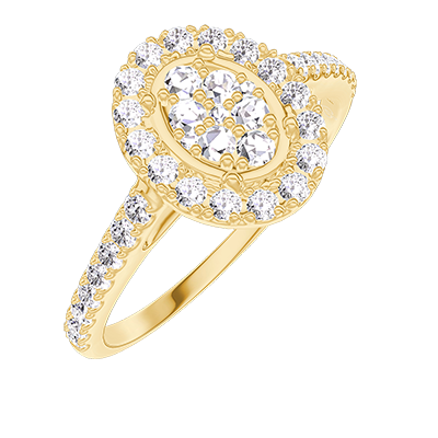 « L'ATELIER » N. 211549Anello Oro giallo 18 carati - Cluster di diamanti naturali Ovale equivalente 0.5 - Halo Diamante - Incastonatura Diamante 4.5