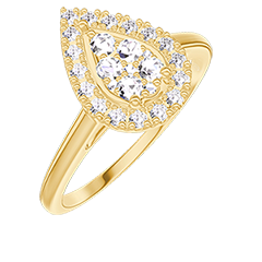 « L'ATELIER » N. 211594Anello Oro giallo 9 carati - Cluster di diamanti naturali Goccia equivalente 0.5 - Halo Diamante 4.8