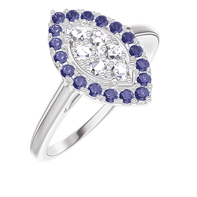 « L'ATELIER » N. 211675Anello Oro bianco 18 carati - Cluster di diamanti naturali Marchesa equivalente 0.5 - Halo Zaffiro blu