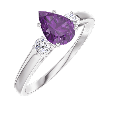 « L'ATELIER » N. 217272Anello Oro bianco 9 carati - Ametista Goccia 0.5 Carati - Pietre laterali Diamante