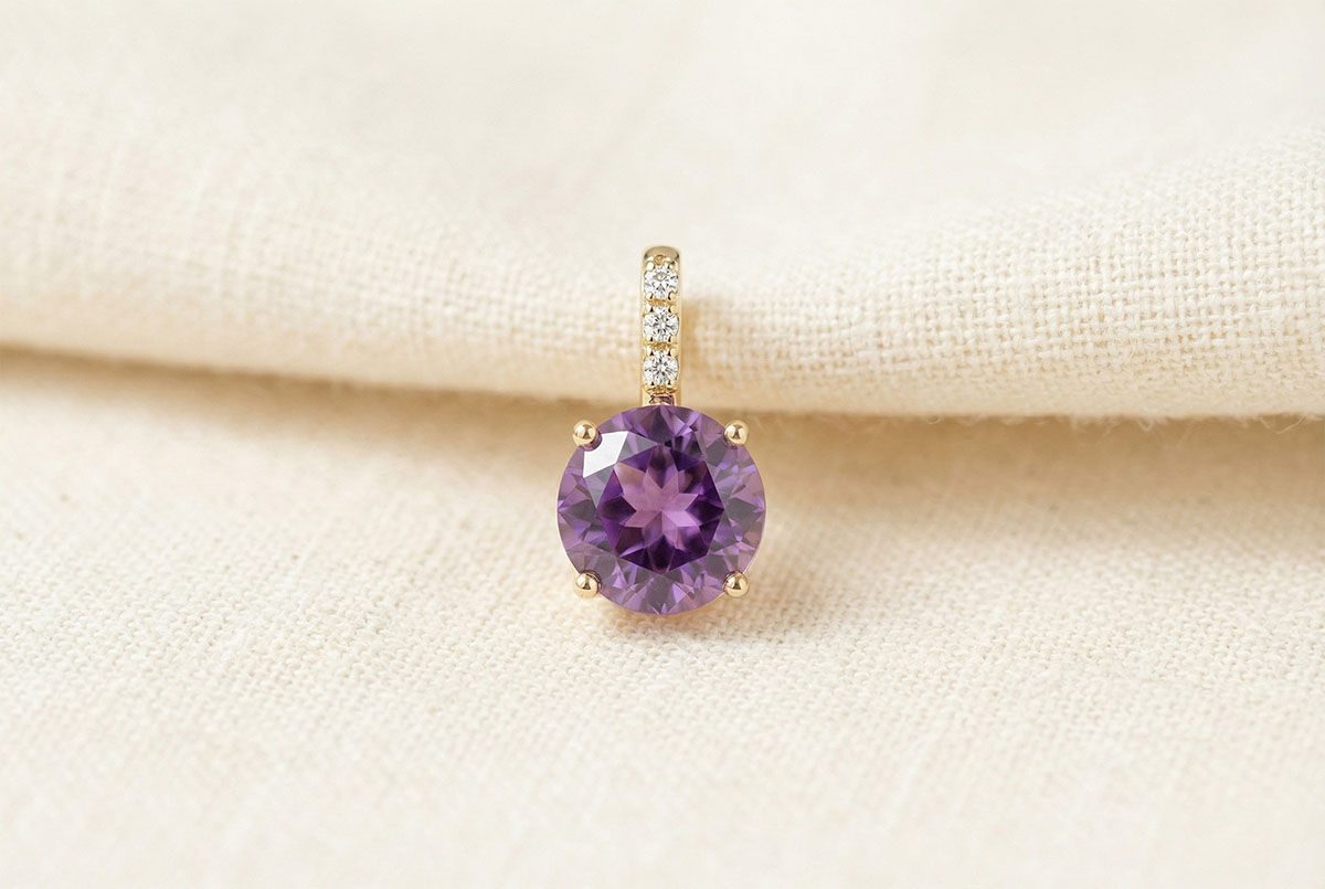 « L'ATELIER » N. 220020Ciondolo Oro bianco 9 carati - Ametista Rotonda 0.3 Carati - Nessuna catenella 4.6