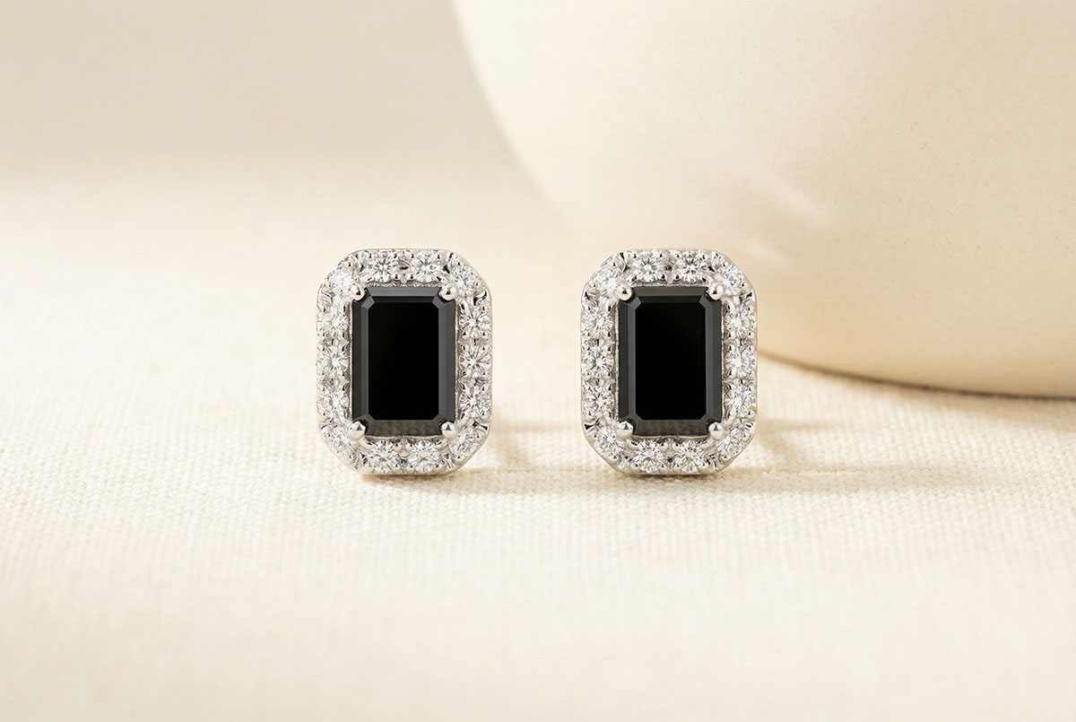 « L'ATELIER » N. 225295Orecchini Oro bianco 9 carati - Diamante nero Rettangolo 0.3 Carati (2 X) - Halo Diamante