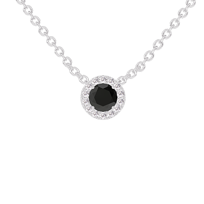« L'ATELIER » Nº226684Collana Oro bianco 9 carati - Diamante nero Rotonda 0.3 Carati - Halo Diamante - Catena Rolò