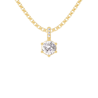 « L'ATELIER » N. 405291Ciondolo Oro giallo 18 carati - Diamante di laboratorio Rotonda 0.3 Carati - Incastonatura Diamante di laboratorio - Catena Veneziana 4.6