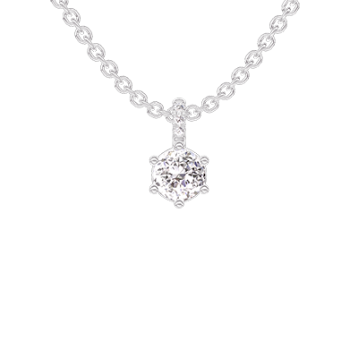 « L'ATELIER » N. 405305Ciondolo Oro bianco 18 carati - Diamante di laboratorio Rotonda 0.3 Carati - Incastonatura Diamante di laboratorio - Catena Rolò 4.6