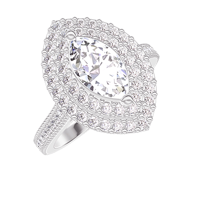 « L'ATELIER » Nº407377Anello Oro bianco 9 carati - Diamante di laboratorio Marchesa 0.5 Carati - Halo Diamante di laboratorio - Incastonatura Diamante di laboratorio
