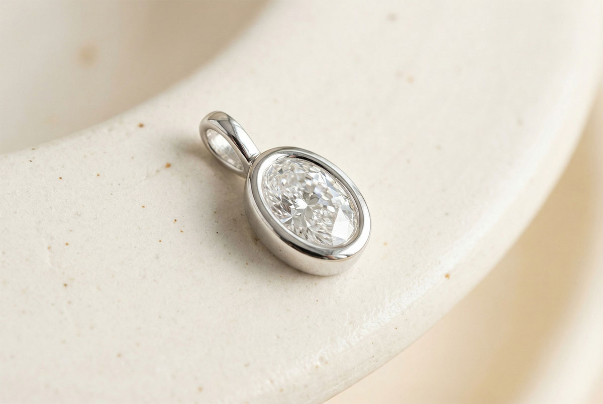 « L'ATELIER » N. 409500Ciondolo Oro bianco 9 carati - Diamante di laboratorio Ovale 0.3 Carati - Nessuna catenella