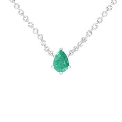 « L'ATELIER » Nº412922Collana Oro bianco 9 carati - Smeraldo Goccia 0.3 Carati - Catena Rolò