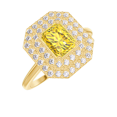 « L'ATELIER » N. 417567Anello Oro giallo 18 carati - Zaffiro giallo Rettangolo 0.5 Carati - Halo Diamante