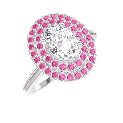 « L'ATELIER » N. 422449Anello Oro bianco 18 carati - Diamante Ovale 0.5 Carati - Halo Zaffiro rosa