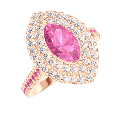 « L'ATELIER » Nº448319Anello Oro rosa 9 carati - Zaffiro rosa Marchesa 0.5 Carati - Halo Diamante - Incastonatura Zaffiro rosa