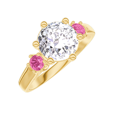 « L'ATELIER » N. 456141Anello Oro giallo 9 carati - Diamante di laboratorio Rotonda 1 Carati - Pietre laterali Zaffiro rosa