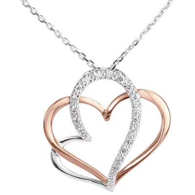 Una collana piena di riccioli teneri e amorosi che unisce con delicatezza Oro rosa e Oro bianco pavé.