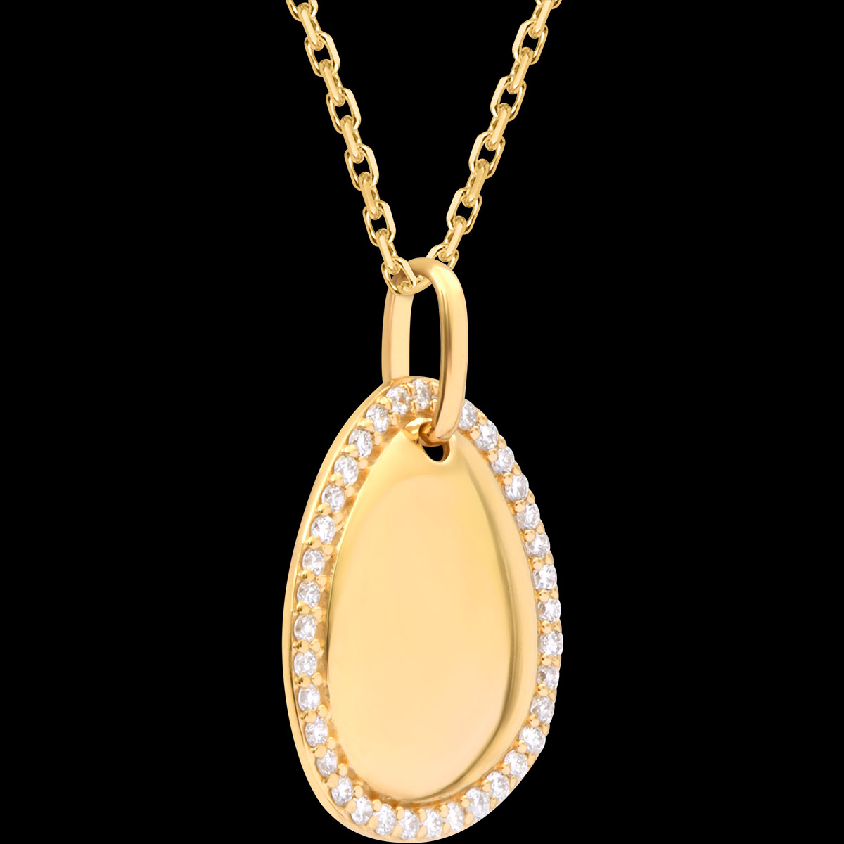 Medaglia ciottolo Amélie con incastonatura – Oro giallo 18 carati e diamanti sintetici