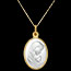 Sì, questa medaglia in oro giallo 18 carati e madreperla è un dono spirituale significativo che simboleggia protezione e tenerezza.