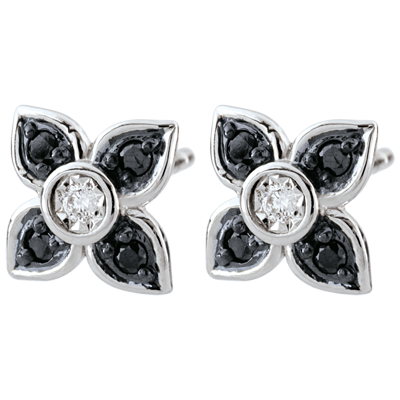 Orecchini Chiaroscuro - Giglio nero - Oro bianco - 9 carati -Diamanti bianchi e neri