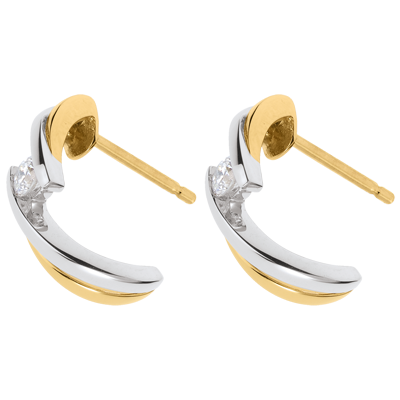 Orecchini Avventura a due - Oro giallo e Oro bianco - 18 carati - 2 Diamanti - 0.16 carati