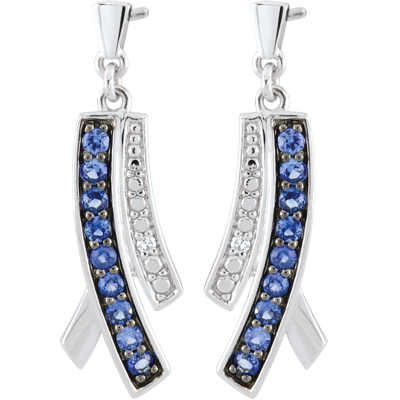 Orecchini Blina - Oro bianco - 9 carati - 18 Zaffiri - 2 Diamanti - 0.32 carati