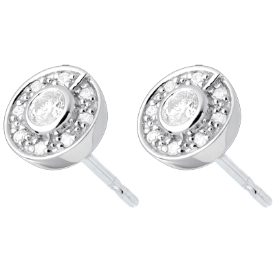 Orecchini Bottone - Oro bianco - 18 Diamanti - 0.25 carati