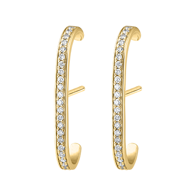 Un paio di orecchini in oro giallo con pavé di diamanti, un modello dalla forma che si allunga come una scia luccicante.