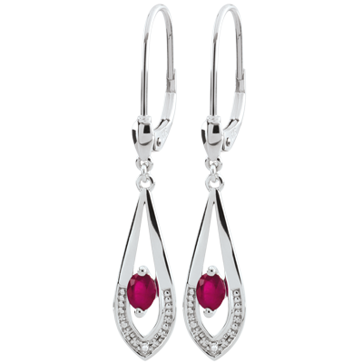Orecchini - Britanie - Oro bianco - 9 carati - 2 Diamanti - 2 Rubini - 0.45 carati