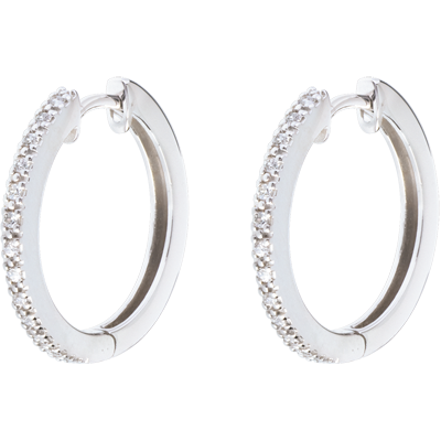 Orecchini a cerchio semi pavé - Oro bianco - 18 carati - 26 Diamanti - 0.09 carati