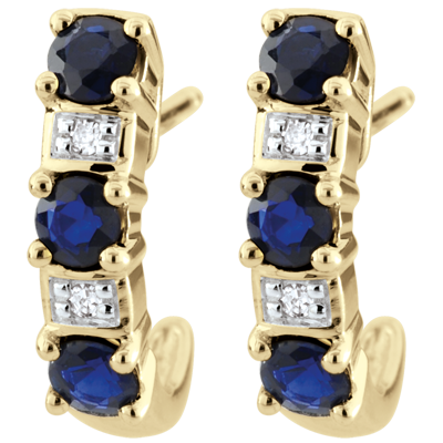 Dei classici orecchini a mezzo cerchio in Oro giallo, impreziositi da diamanti e zaffiri, per un'eleganza senza tempo.