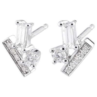 Un diamante rotondo, un pavé di brillanti ed un motivo in Oro bianco si uniscono per formare preziosa brina da indossare. Degli orecchini raffinati per un delicato tocco di luce al volto.